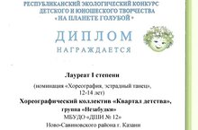 - Хореографический коллектив "Квартал детства", группу "Незабудки" - Лауреат 1 степени в номинации "Хореография, эстрадный танец", 12-14 лет. Преподаватель Аввакумова Е.Н,