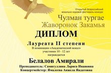 - Белалова Амирали - Лауреата 2 степени (преподаватель Самигуллина Л.И., концертмейстер Ямалеева А.Я.)