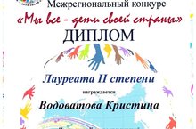 - Водоватову Кристину - Лауреата 2 степени (преподаватель Хуснутдинова Л.Р.)