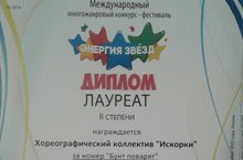 - Хореографический коллектив "Искорки" - Лауреатов 2 степени (руководитель Егорова М.И.)