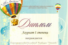 Поздравляем с успешным выступлением на Всероссийском фестиваль-конкурсе детского творчества "На высоте" хореографический коллектив "Созвездие "Детство"" - Лауреатов 1 степени ( преподаватель Сабитова А.Е.). Желаем дальнейших успехов!