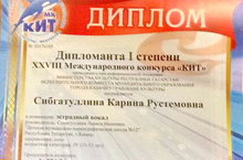 Поздравляем Сибгатуллину Карину - Дипломанта 1 степени XXVIII Международного конкурса "КИТ" (преподаватель Самигуллина Л.И.). Желаем дальнейших успехов!