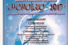 Сибгатуллину Карину - дипломанта 1 степени Открытого Всероссийского фестиваль-конкурса детского и юношеского творчества "МОРОЗКО-2017" (преподаватель Самигуллина Л.И.). Желаем дальнейших успехов.