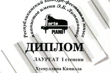 Поздравляем Хуснуллину Камиллу с Дипломом Лауреата 1 степени в Республиканском конкурсе - фестивале юных пианистов имени Э.Б. Литвиновой "Forte Piano" (преподаватель Груйич М.М.)!
