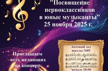 25 ноября 2025 года в 18.00 в актовом зале школы №85 состоится концерт "Посвящение первоклассников в юные музыканты" .