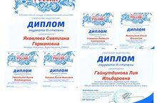 Результаты: Исмагилова О.И. - дипломант, Гайнутдинова Л.И., Семенова Л.С., Яковлева С.Г. и Терентьева А.В. - лауреаты 3 степени, Зайцева Л.И. - лауреат 2 степени.