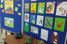 Обучающиеся Изо отделения "ДШИ №16" подготовили выставку в холле школы, посвященную празднику. -