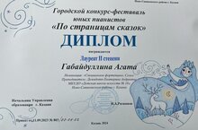Поздравляем нашу участницу городского конкурса-фестиваля юных пианистов "По страницам сказок",состоявшегося 18 февраля 2024 года, Габайдуллину Агату, а также ее преподавателя Демидович Екатерину Андреевну с дипломом лауреата II степени. Желаем успехов и многочисленных достижений!