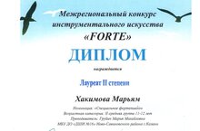 Ученица 3 класса Хакимова Марьям стала лауреатом 2 степени Межрегионального конкурса инструментального искусства «FORTE», преп. Груйич М.М. Поздравляем Марьям - одну из наших звездочек - и желаем дальнейших успехов в учебе и новых достижений!