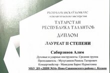 Сабирзянов Алим - лауреат I степени (преп. Мухутдинов Р.Т., концертмейстер Мамедова Б.Н.);