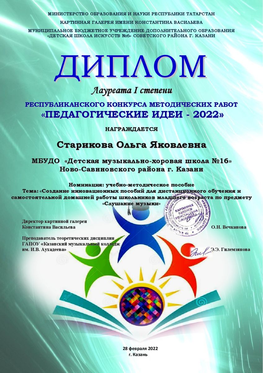 Старикова О. Я. - Лауреат I степени конкурса "Педагогические идеи".jpg