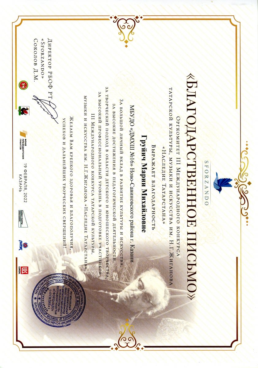 Груйич М. М. - Благ. письмо конкурса "Наследие Татарстана".jpg