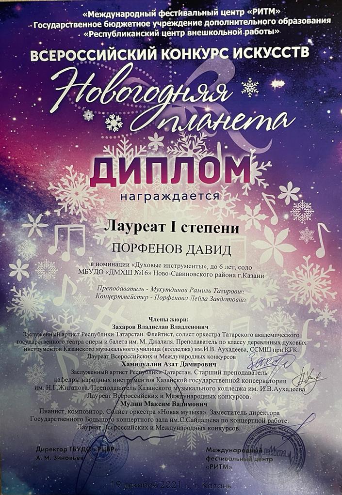 Порфенов Д. - Лауреат I степени конкурса "Новогодняя планета".jpg