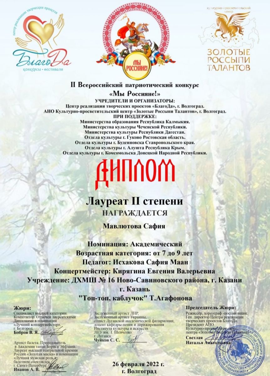 Мавлютова С. - Лауреат II степени конкурса "Мы-Россияне".jpg
