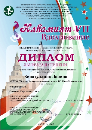 Зиннатуллина Д. - Лауреат II степени конкурса "Илhамият-VII".jpg