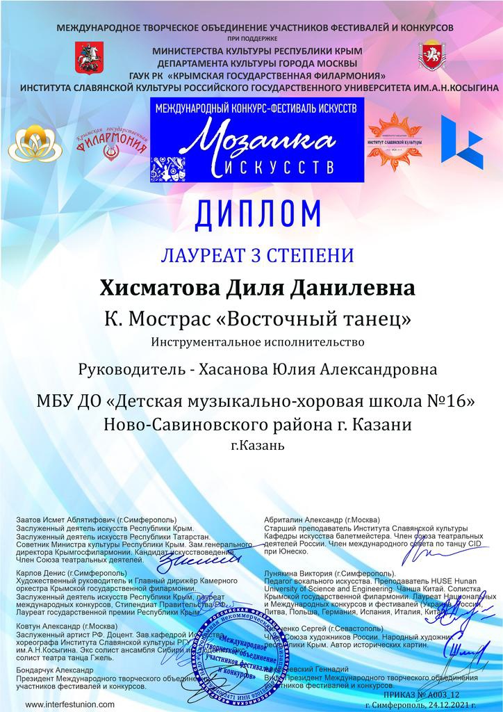 Хисматова Д. - Лауреат III степени конкурса "Мозаика искусств".jpg