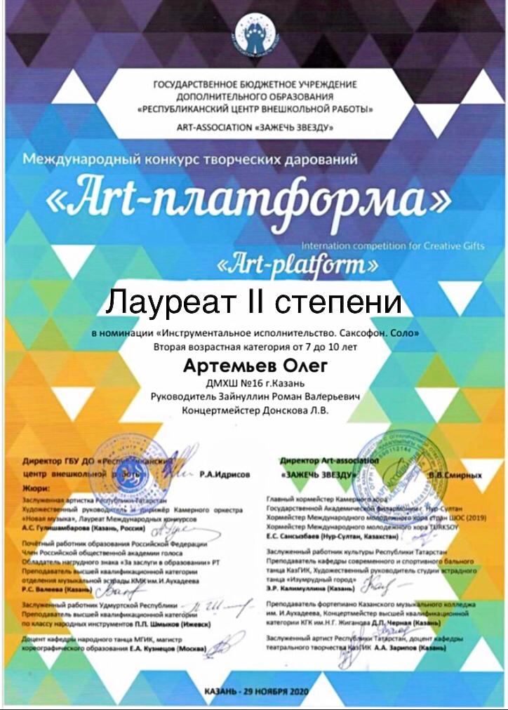 34. Артемьев О. - Лауреат II степени конкурса "Art - платформа".jpg