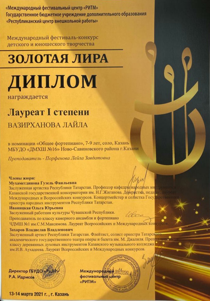 26. Вазирханова Л. - Лауреат I степени конкурса "Золотая лира".jpg