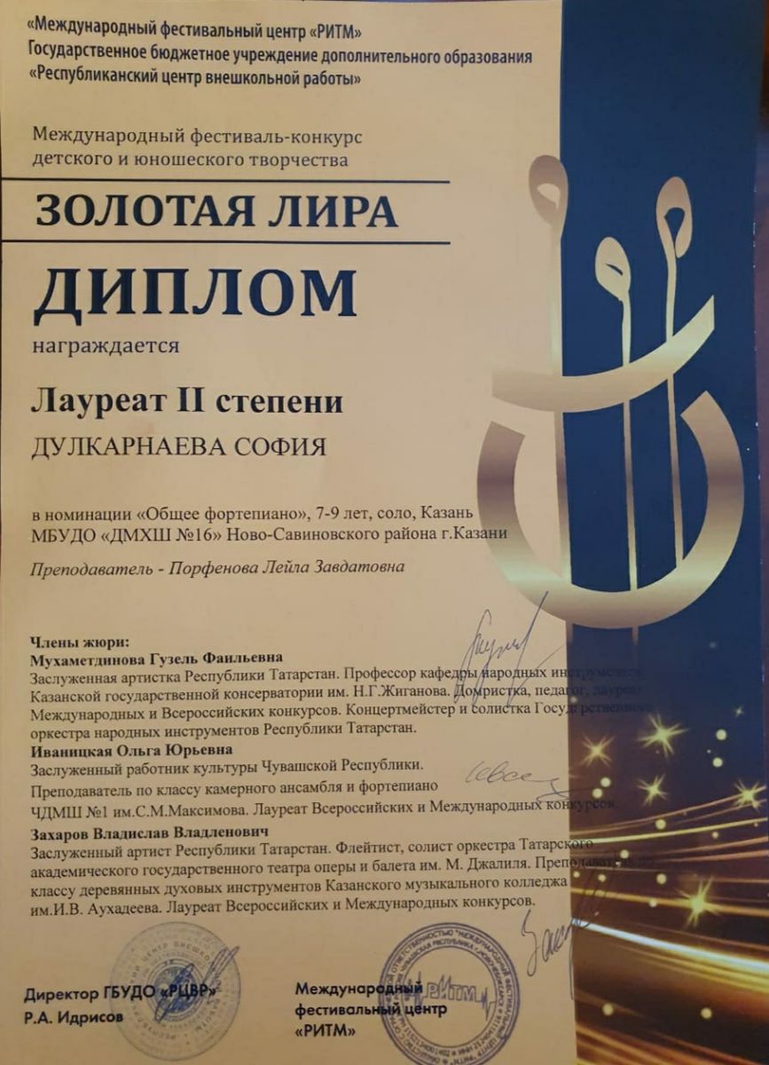 25. Дулкарнаева С.- - Лауреат II степени конкурса "Золотая лира".jpg