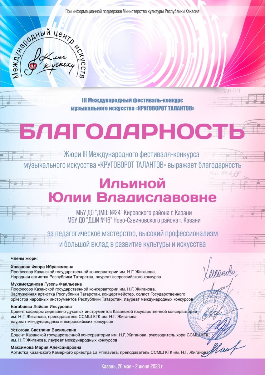 Ильина Ю.В. - Благодарность "Круговорот талантов"