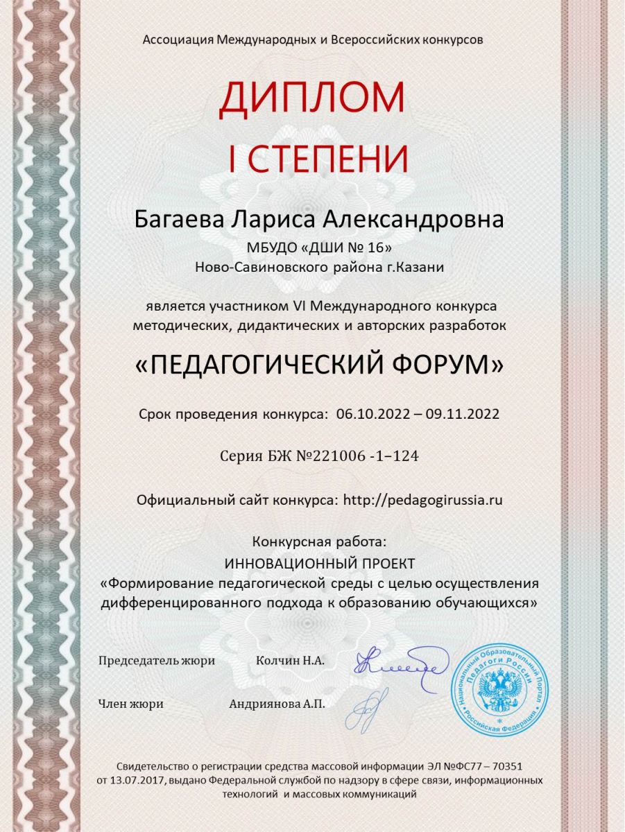 Багаева Л.А. - Победитель международного фестиваля "Признание".jpg