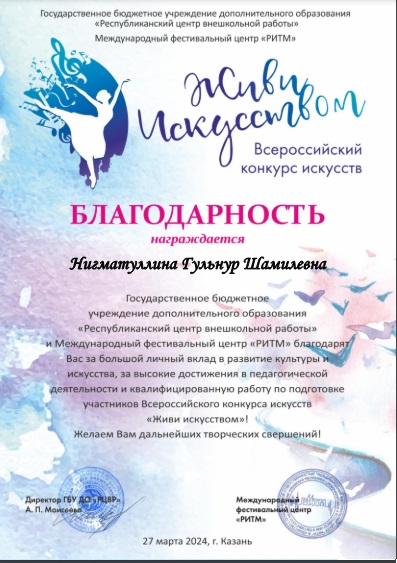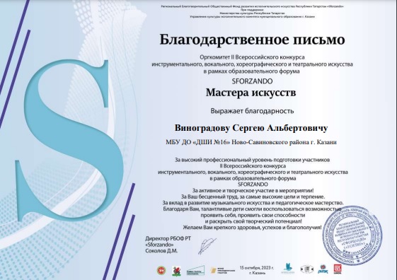 Благодарственные письма: