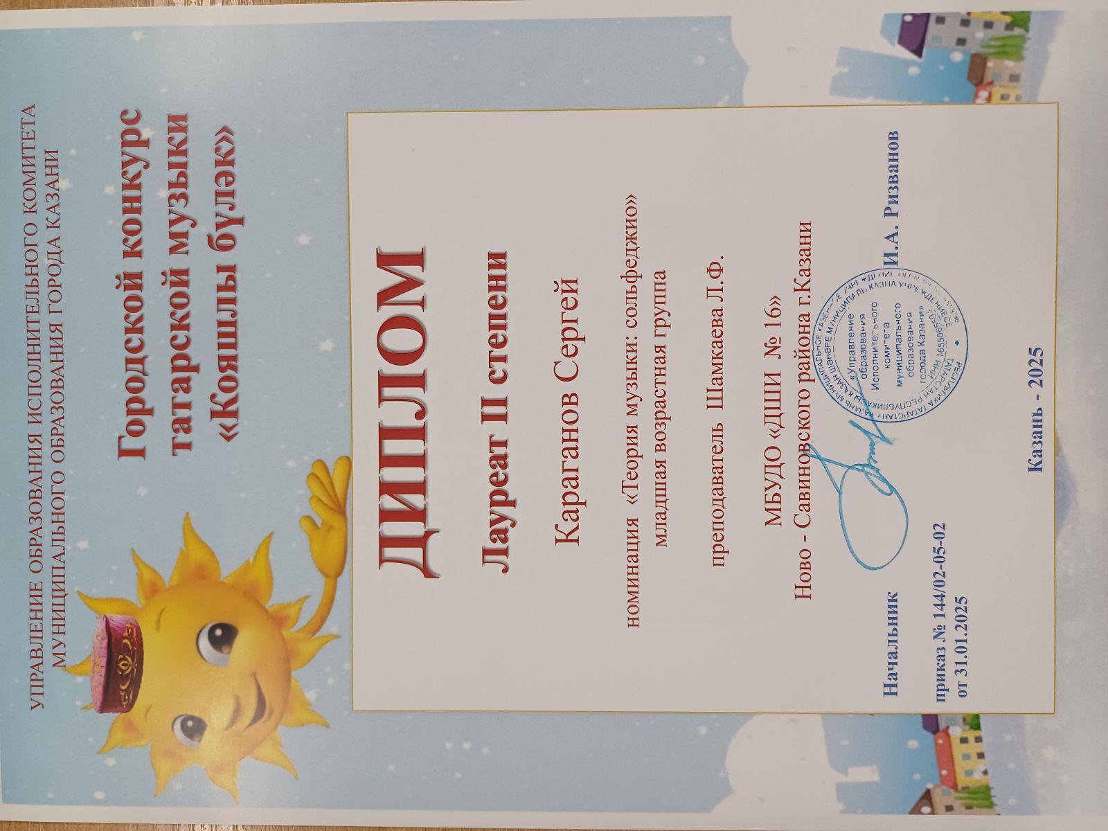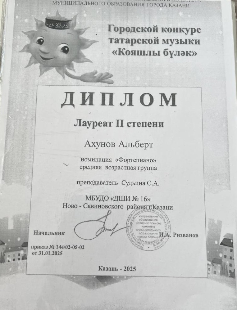 48. Абзалилов Арслан, Абзалилов Рашид - диплом. Городской конкурс "Звуки мира"