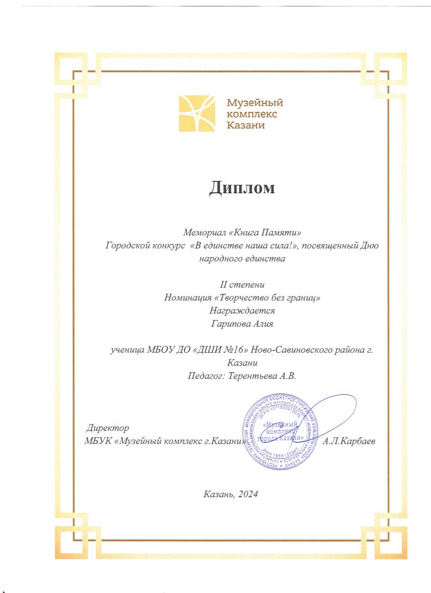 3. Гарипова Алия городской конкурс «В единстве наша сила!» - диплом 2 степени