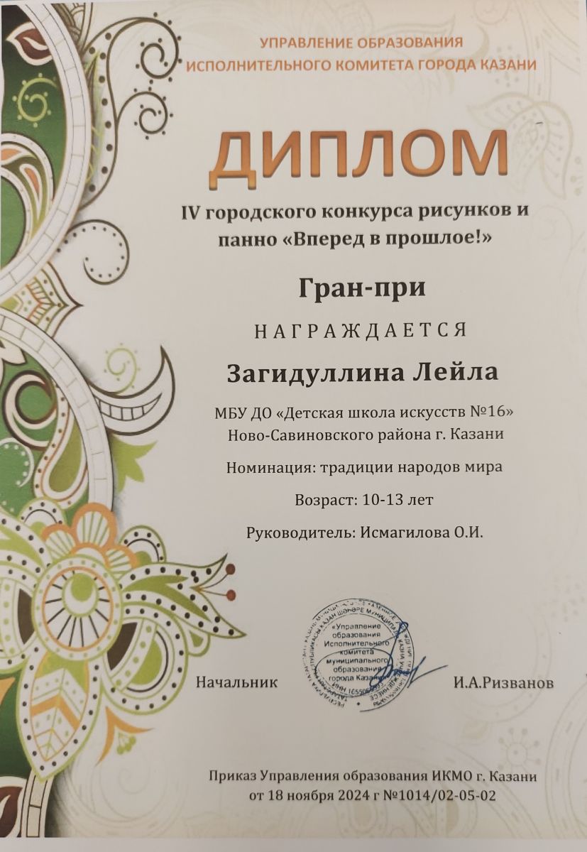 15. Загидуллина Лейла диплом 3 степени Городской конкурс "Родной край"
