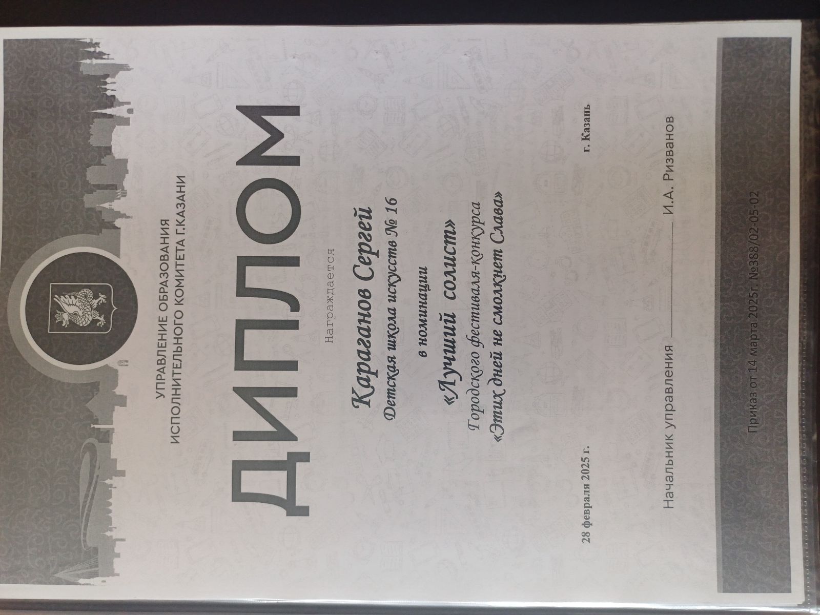 1. Караганов Сергей - диплом "Лучший солист" городского конкурса "Этих дней не смолкнет Слава"