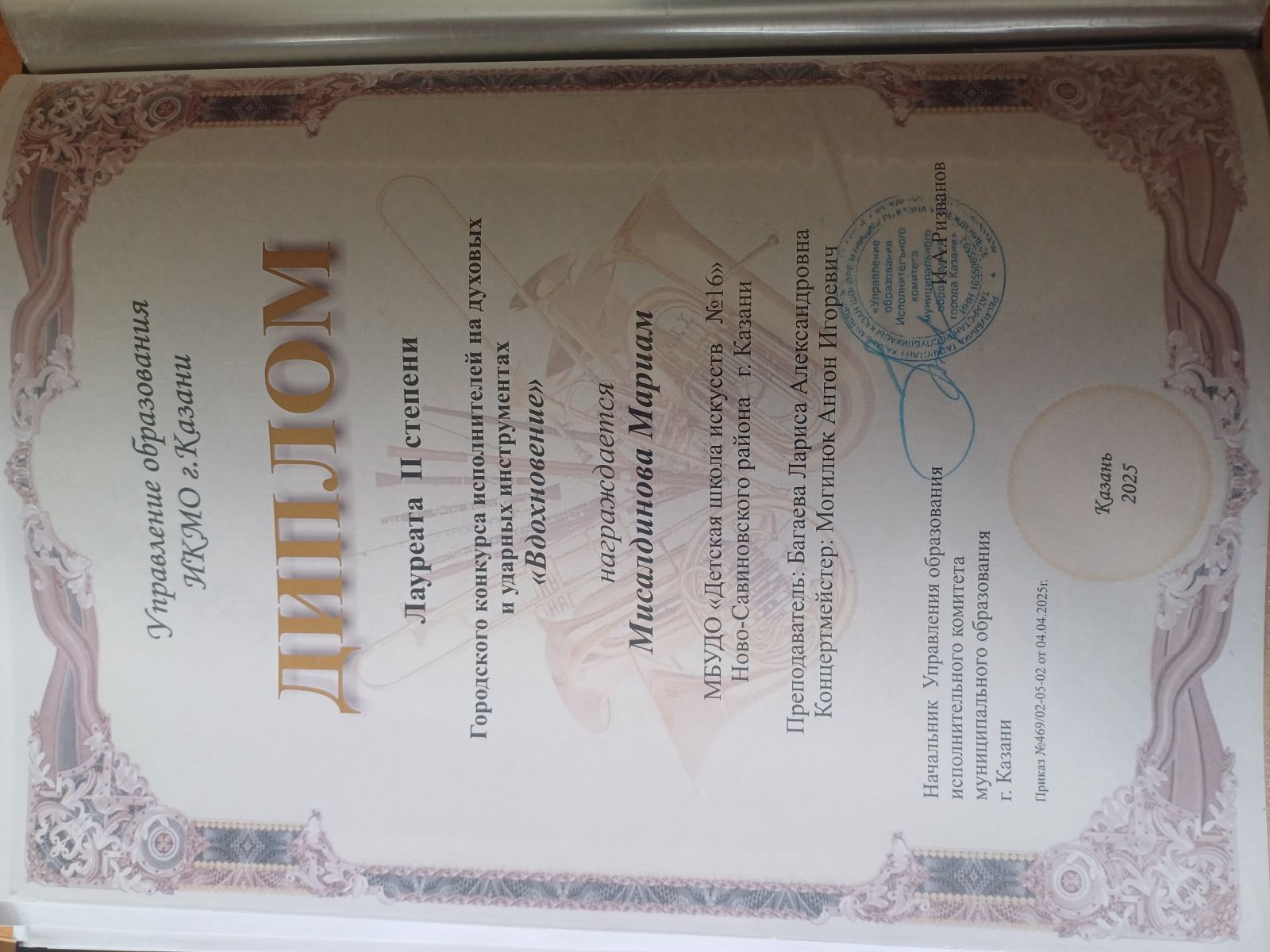 67. Мисалдинова Мариам - лауреат 2 степени. Городской конкурс исполнителей на духовых и ударных инструментах «Вдохновение»