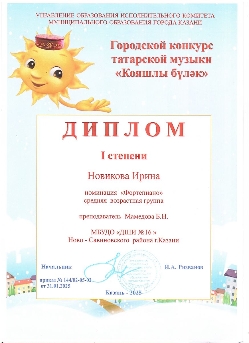 50. Новикова Ирина - диплом 1 степени. Городской конкурс "Кояшлы булэк"