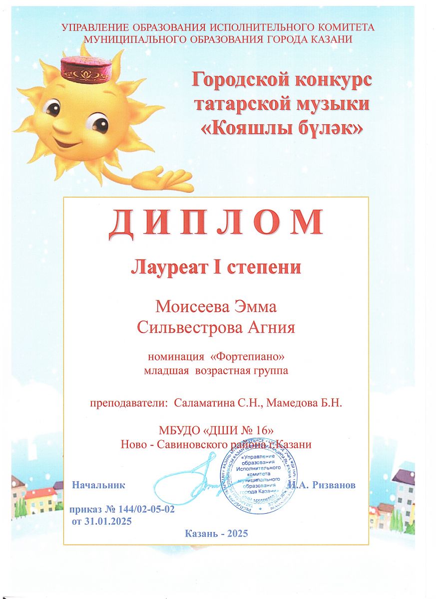 55. Мойсеева Эмма, Сильвестрова Агния - лауреат 1 степени. Городской конкурс "Кояшлы булэк"