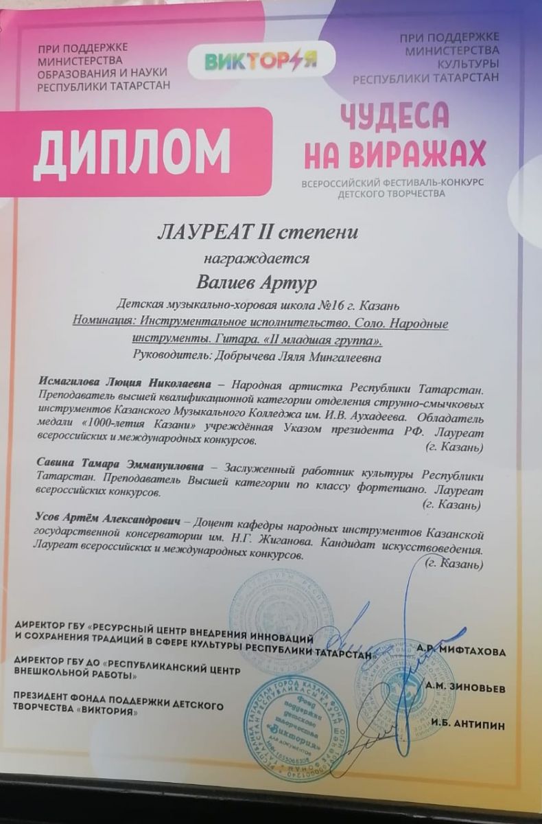 Поздравляем лауреата 2степени Валиева Артура с победой на всероссийском конкурсе-фестивале!