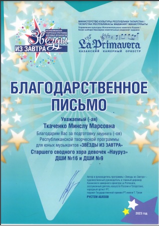Диплом лауреата сводному старшему хору "Науруз" за участие в творческой программе "Звезды из завтра"