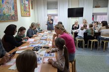 На мастер-классе наши гости познакомились с таким материалом как масляная пастель, узнали все секреты и различные техники работы с данным материалом.