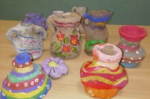 Учащиеся объединения «Татарское декоративное и ИЗО искусство» педагога не только любят лепить из глины изделия, но и декорировать их. Для украшения своих работ используются различные полосы, волнистые линии, цветочные мотивы, при этом у детей развиваются навыки объёмной росписи.