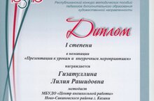 Методист МБУДО "ЦВР" Ново-Савиновского р-на Гизатуллина Л.Р. приняла участие в Республиканском конкурсе методических пособий педагогов дополнительного образования художественной направленности и была награждена дипломом I степени. Поздравляем!!!