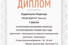 С 12 по 14 ноября 2021 года в спортивном зале МБОУ «СОШ №34» г. Набережные Челны состоялся III этап Кубка Республики Татарстан по спортивному туризму 2021 года (дистанции – пешеходные (в закрытых помещениях)). В рамках III этапа Кубка Республики Татарстан по спортивному туризму 2021 года (дистанции – пешеходные (в закрытых помещениях)) проводились соревнования на 2 и 3 классах. Кудрявцева Надежда стала победительницей на 2 классе дистанций, так же на связках Надежда вместе с Рыболовлевой Анной заняли третье место. Наша команда под руководством педагогов дополнительного образования ДДЮТиЭ "Простор" Дерзаева С.В., Цыганова Д.В., Цыгановой Т.А. достойно выступила и на практике показала свои спортивные умения. Поздравляем всех участников соревнований с успешным стартом и желаем дальнейших успехов!