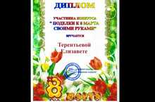 Ученица 1 класса прогимназии Терентьева Лиза приняла участие в конкурсе "Поделки к 8 марта своими руками".