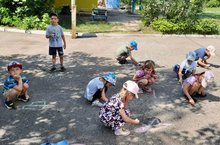 В нашем детском саду , ребята не остались в стороне и разрисовали территорию.