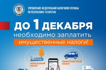УФНС России по Республике Татарстан напоминает об уплате налогов до 1 декабря 2020 года.