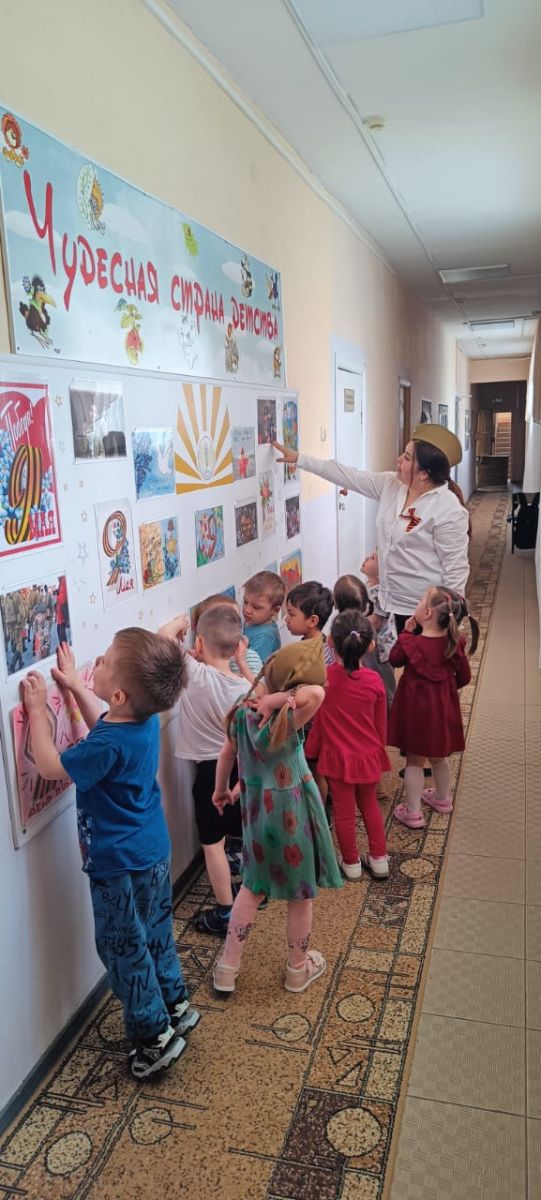 День Победы один из самых почитаемых праздников в нашей стране. 9 мая 1945 года уходит все дальше и дальше от нас, но мы по – прежнему помним, какой ценой досталась эта победа нашему народу, как любили, берегли и защищали ее наши предки, наши отцы и деды. Нельзя, чтобы наши дети забывали об этом. В преддверии Дня Победы, все группы прошли по нашим памятным местам,которые мы подготовили: экспозиция "Вечный огонь", "Бессмертный полк" , стенд памяти "Живет память поколениях", выставка рисунков в честь Дня Победы, рассказ медсестры Юсуповой Наили Абдуловны о подвигах медсестр в военное время. С детьми обсудили историю Великой Отечественной войны, значимость этого праздника для нашей страны. Педагоги рассказали детям о начале войны, о том, как нелегко досталась победа, и о важных моментах нашей истории. Они объяснили, почему мы так чтим этот праздник и почему он вызывает слезы радости. Дети узнали, что война принесла много горя и страданий людям.Мы стремимся воспитать в дошкольниках чувство патриотизма, сопереживания и уважения к ветеранам Великой Отечественной войны. Важно, чтобы дети понимали, что этот праздник — не только радость, но и память о тех, кто отдал свою жизнь за нашу свободу.