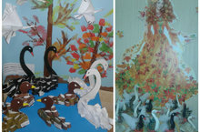 В холле детского сада оформлена выставка "Мои любимые сказки" по произведениям писателей-юбиляров (Ш.Перро, А.С.Пушкин и др.) и книг-юбиляров ("Кот в сапогах", "Тараканище", "Золушка" и др.)