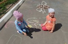 Вряд ли найдешь человека, который бы не рисовал в детстве мелом на асфальте. Рисование на асфальте – это очень увлекательное занятие во время прогулки. А еще это познание детьми окружающего мира и творчество. Рисование мелом на асфальте развивает воображение, внимание, мышление, мелкую моторику, творческие способности, а самое главное, создает хорошее настроение, радость от собственных «шедевров». При рисовании асфальтными мелками дети испытывают совсем другие ощущения, чем при работе с карандашом и кисточкой на бумаге. Какой рисунок, в конце концов, появится на асфальте, совсем неважно, важен сам процесс рисования, он доставляет детям огромное удовольствие. Дети совместно с воспитателями сегодня стали настоящими художниками – своими рисунками превратили серую асфальтную площадку в летнюю яркую полянку.