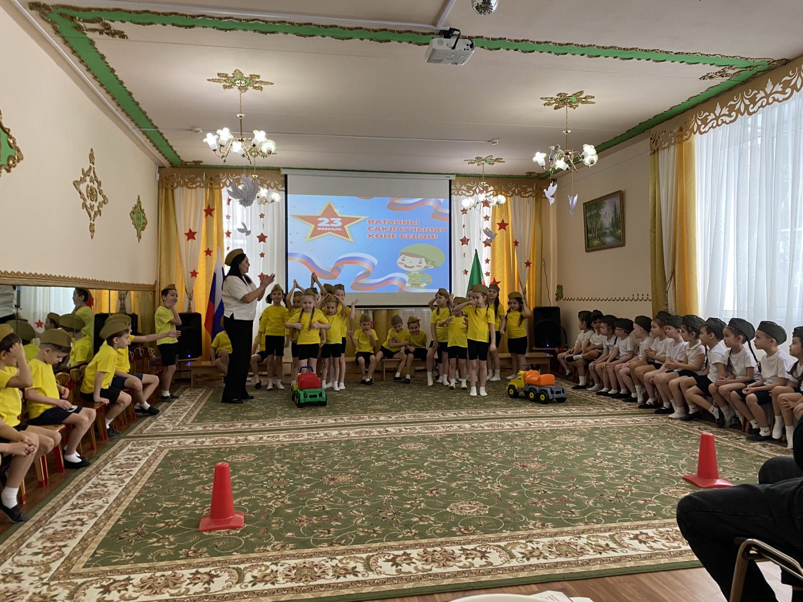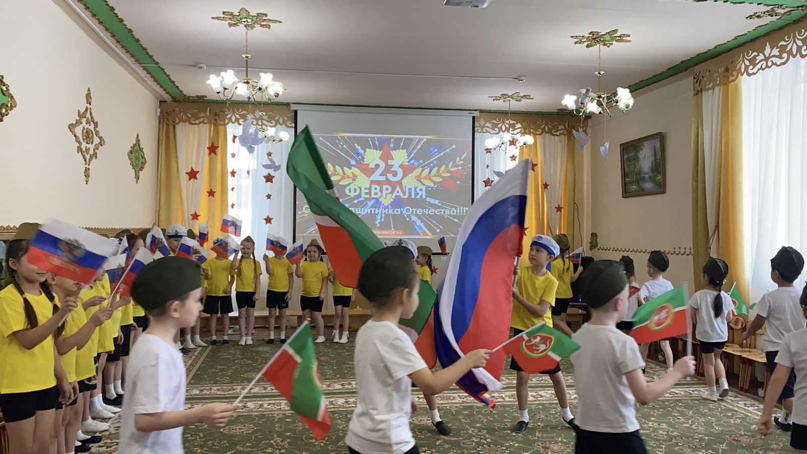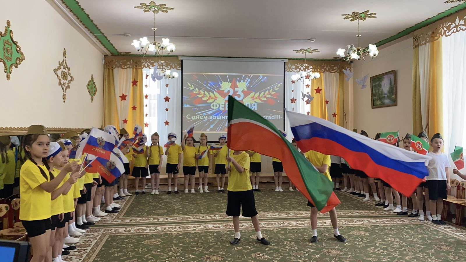 Балалар бакчасында Ваттанны саклаучылар көне билгеләп үтелде. Ике төркем балаларының әтиләрен берләштергән бәйрәм кичәсе бик күңелле үтте. Балалар әтиләре белән бергәләп җырладылар, уеннар уйнадылар. Шулай ук әтиләрнең уңган һәм җитез булулары уеннар аша тикшерелде.