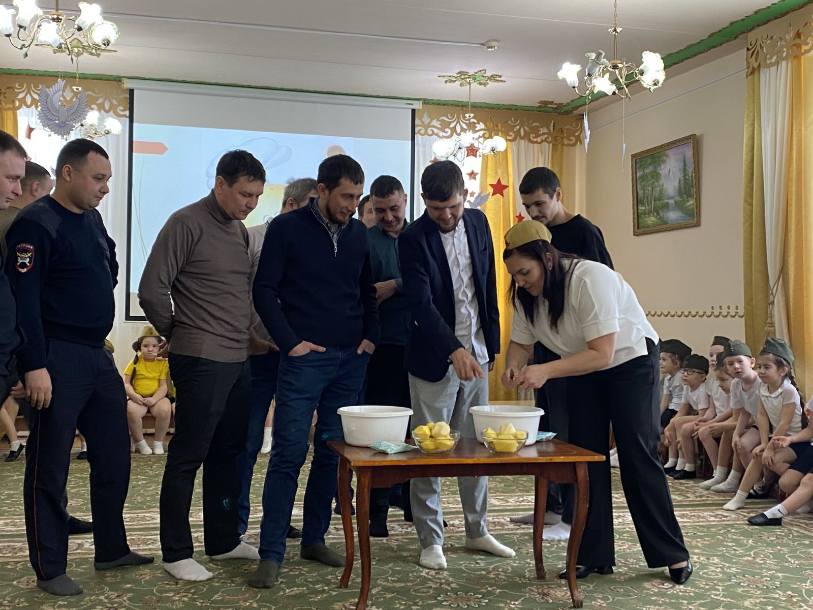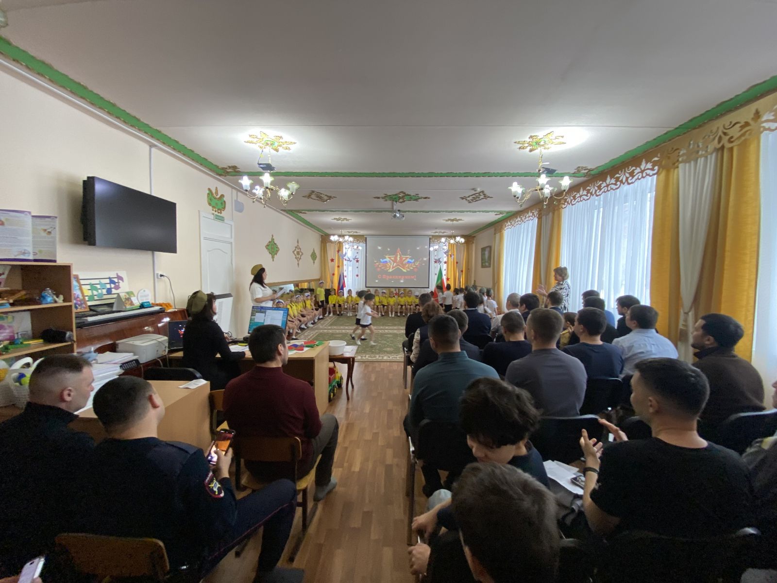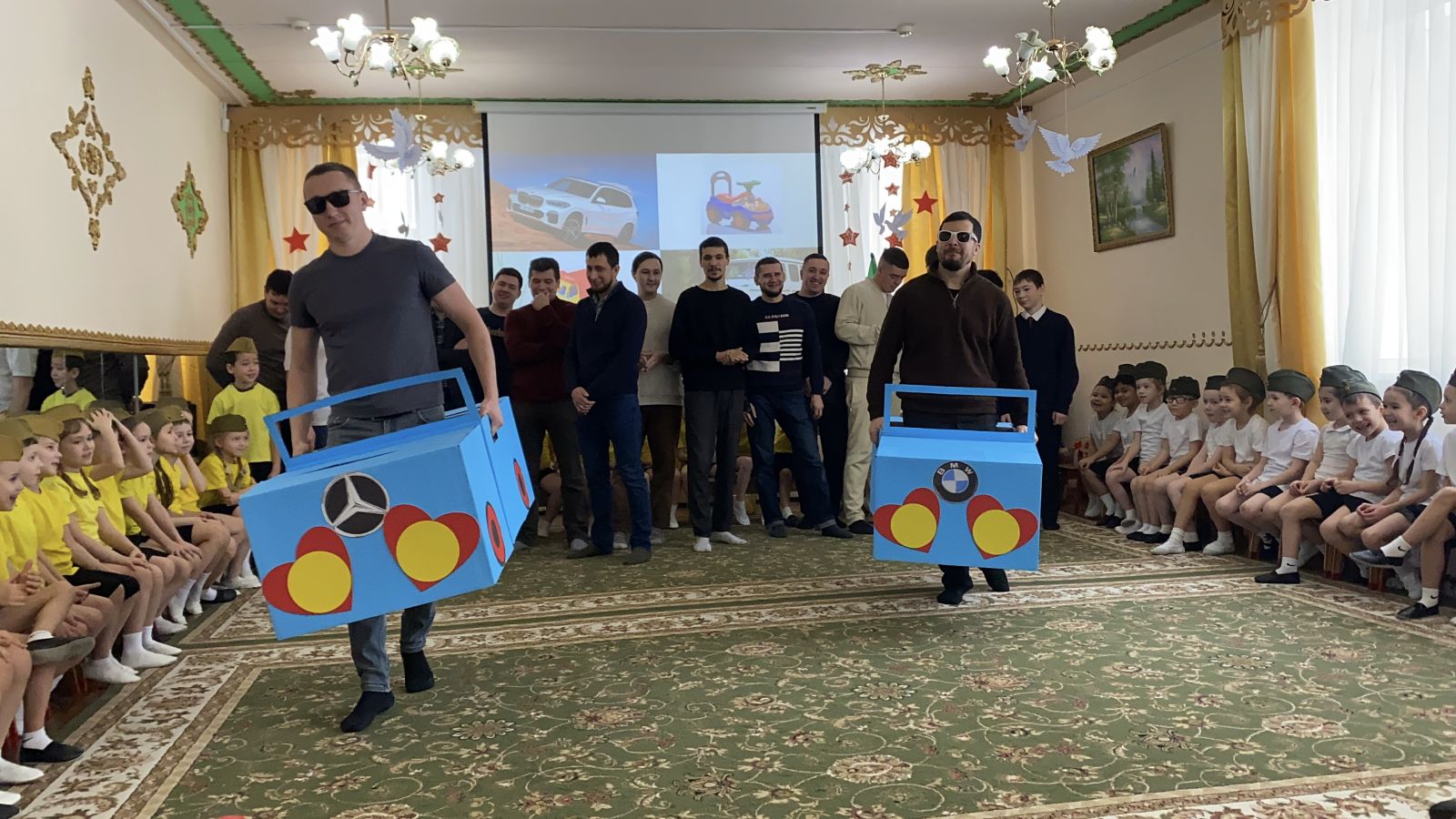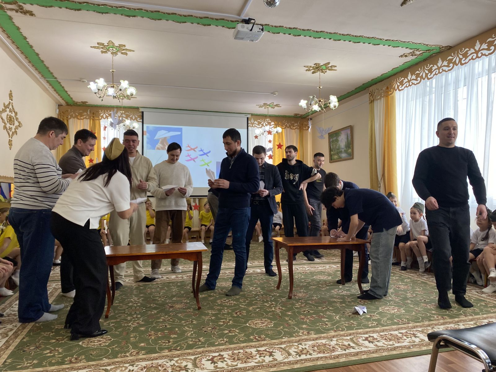 Балалар бакчасында Ваттанны саклаучылар көне билгеләп үтелде. Ике төркем балаларының әтиләрен берләштергән бәйрәм кичәсе бик күңелле үтте. Балалар әтиләре белән бергәләп җырладылар, уеннар уйнадылар. Шулай ук әтиләрнең уңган һәм җитез булулары уеннар аша тикшерелде.