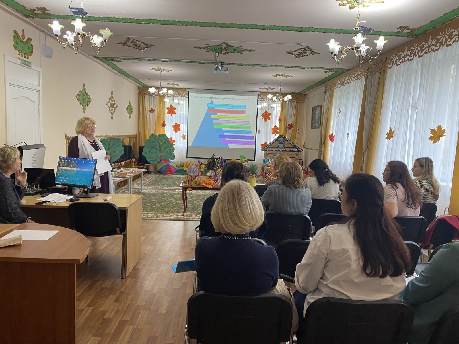 19 сентября в детском саду прошла стажировка для слушателей программы профессиональной переподготовки «Специальное(дефектологическое)образование по направлению «Работа с обучающимися с нарушениями речи коммуникации?(логопедия)»Учителя -логопеды детских садов Ново-Савиновского района делились с опытом работы на тему: « Логопедическая работа по формированию речевой деятельности у детей дошкольного возраста с речевыми нарушениями »
