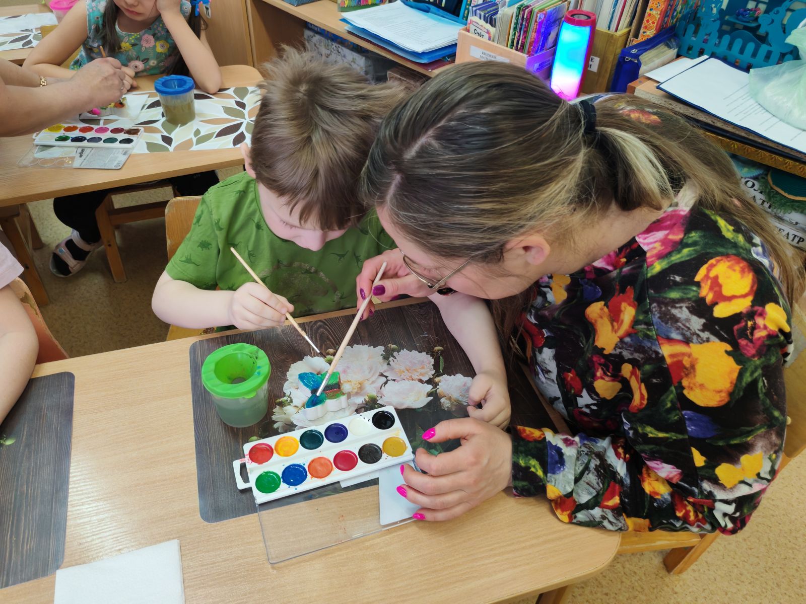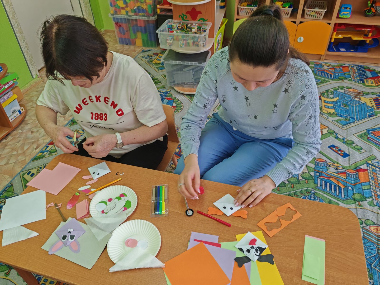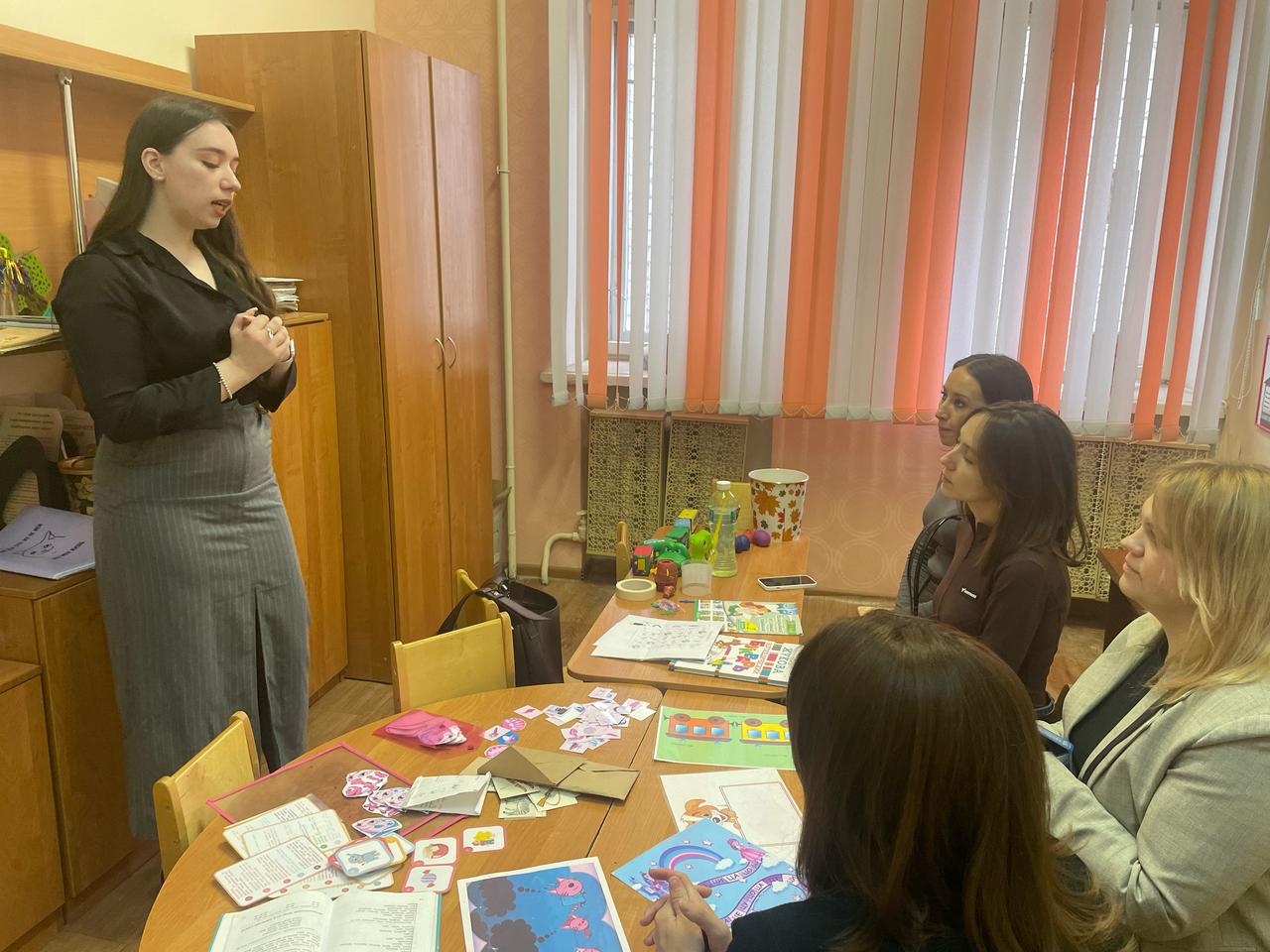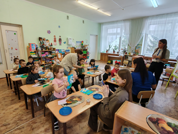 Также Екатерина Олеговна и Елена Вячеславовна представили мастер-класс "Книжки-малышки", который был направлен на совместную работу детей и родителей. Родители и дети вместе создавали маленькие книги, что способствовало развитию творческих способностей и укреплению семейных связей.