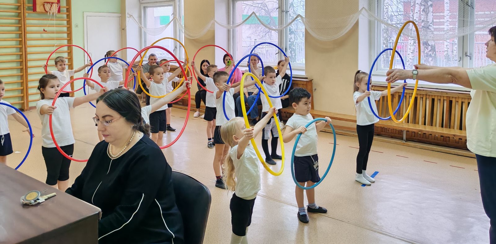 Амина Рамилевна, учитель-логопед старшей группы №5, организовала мастер-класс по дыхательной гимнастике. Родители узнали, как правильно проводить дыхательные упражнения с детьми, чтобы укрепить их здоровье и развить правильное дыхание. Инструктор по физической культуре Манувара Габдулхаковна пригласила юных спортсменов на занятие по физическому развитию. Под ее руководством дети выполняли различные физические упражнения с обручами, развивающие ловкость и координацию движений.